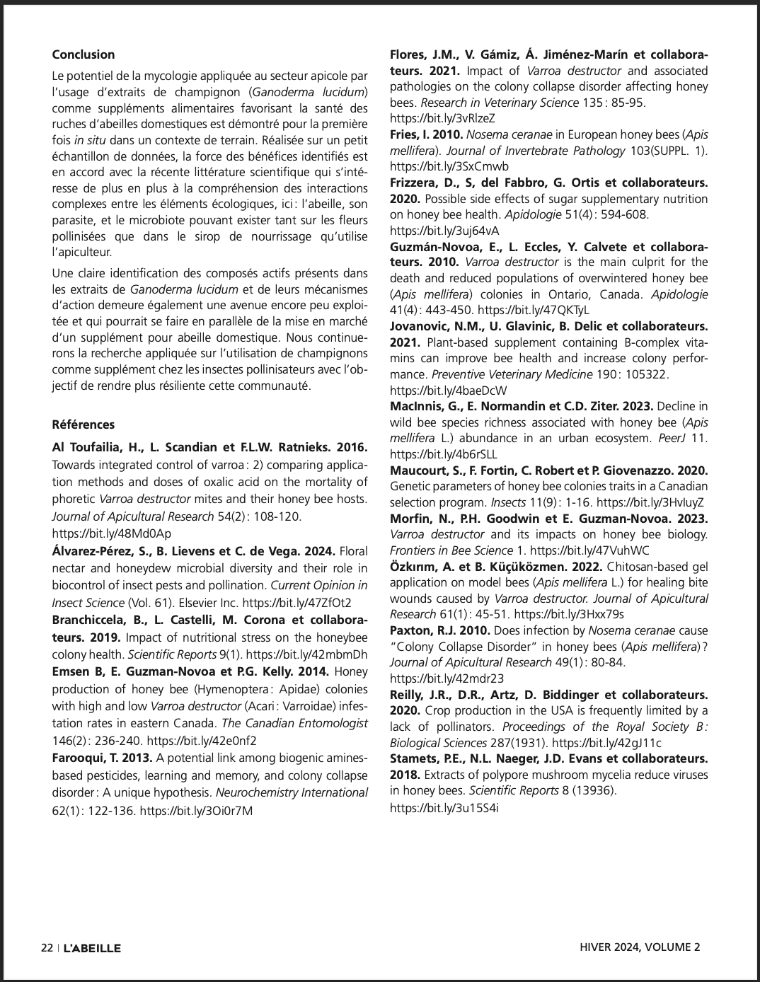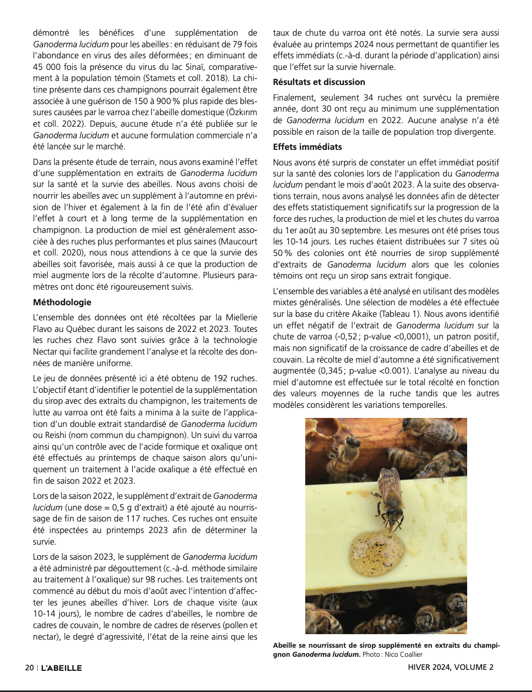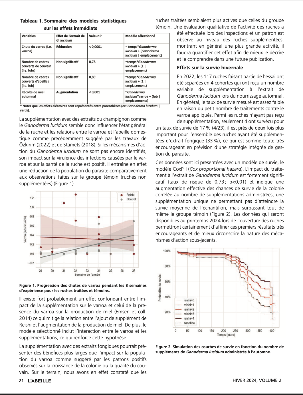 --> Augmentation de la force des colonies survivantes au printemps